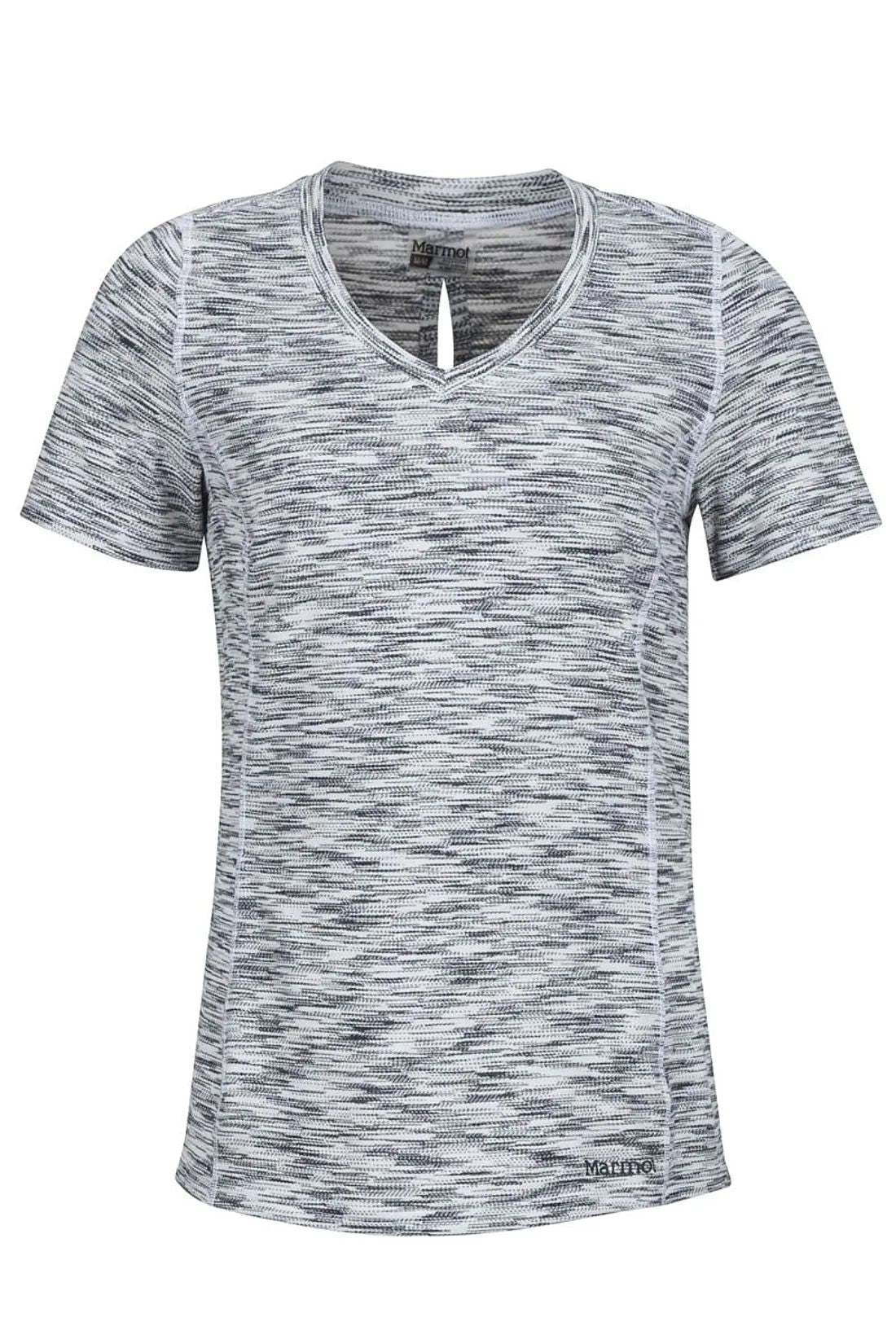 The Marmot Aster Short Sleeve T-Shirt - Women's, White, 48420-080 Womens Clothing Age Group: Adults, Apparel Fit: Regular, Gender: Female, Color: White, Shirt Style: Short Sleeve T-Shirt, Fabric/Material: 51% Polyester 47% Nylon 2% Elastane Twill Space Dye Moss, Sleeve Type: Short Sleeve.